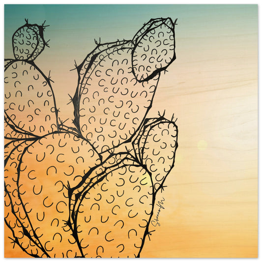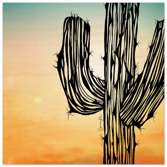 Cacti 3 at Sunset - Wood Print